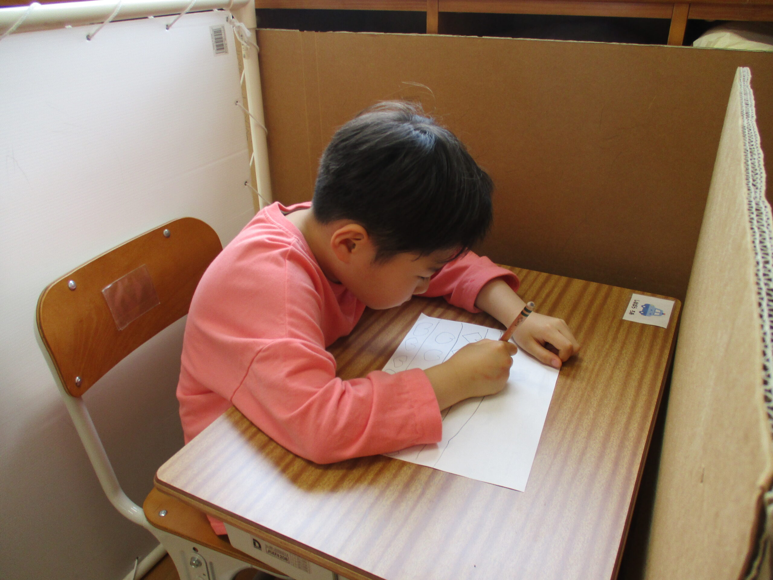 →年長さんは就学に向けて小学校で使用している机でお勉強をしています!