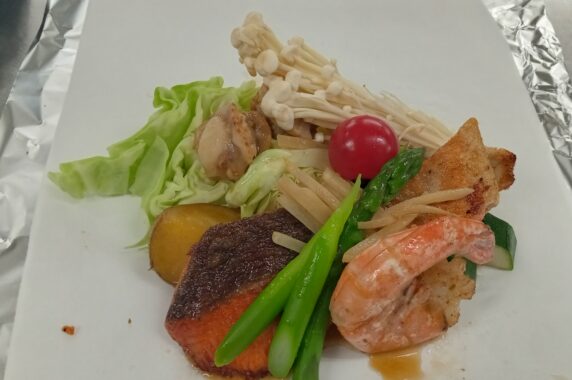 「魚介と春野菜のパピヨット(包み焼き)新生姜香る醤油(佐渡サーモン)」