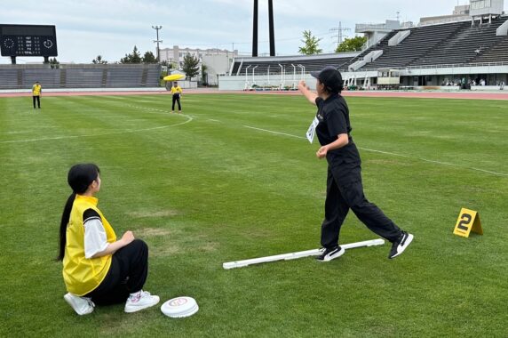 午後からはディスタンス競技。ディスタンスは、ディスクをどれだけ遠くに飛ばせるかを競います。午後になると少し曇り空になって、だいぶ過ごしやすくなり快適に競技できました(^^)