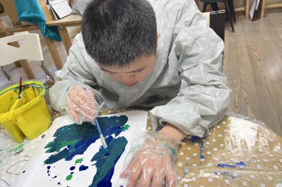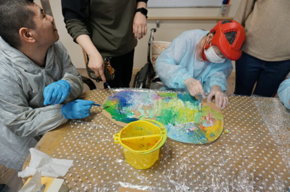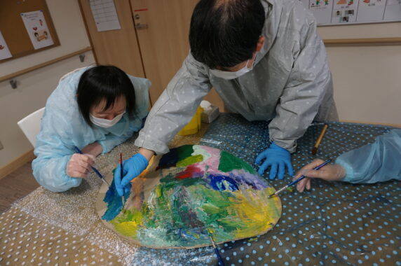 「(見本の色を見ながら)こんな感じかな?」「もっと色を混ぜてみよう!」と試行錯誤…(;・∀・)