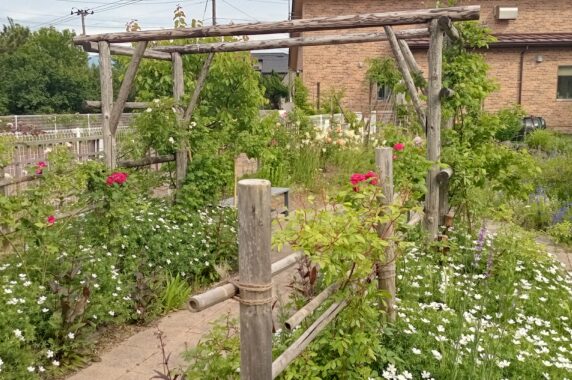バラは100本以上あり、その他50種類の草花が鑑賞できます。