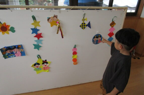 七夕集会に先駆けて7月3日にはみんなで短冊や七夕飾りを笹に飾り付け、願い事が叶うようにお願いをしました!
