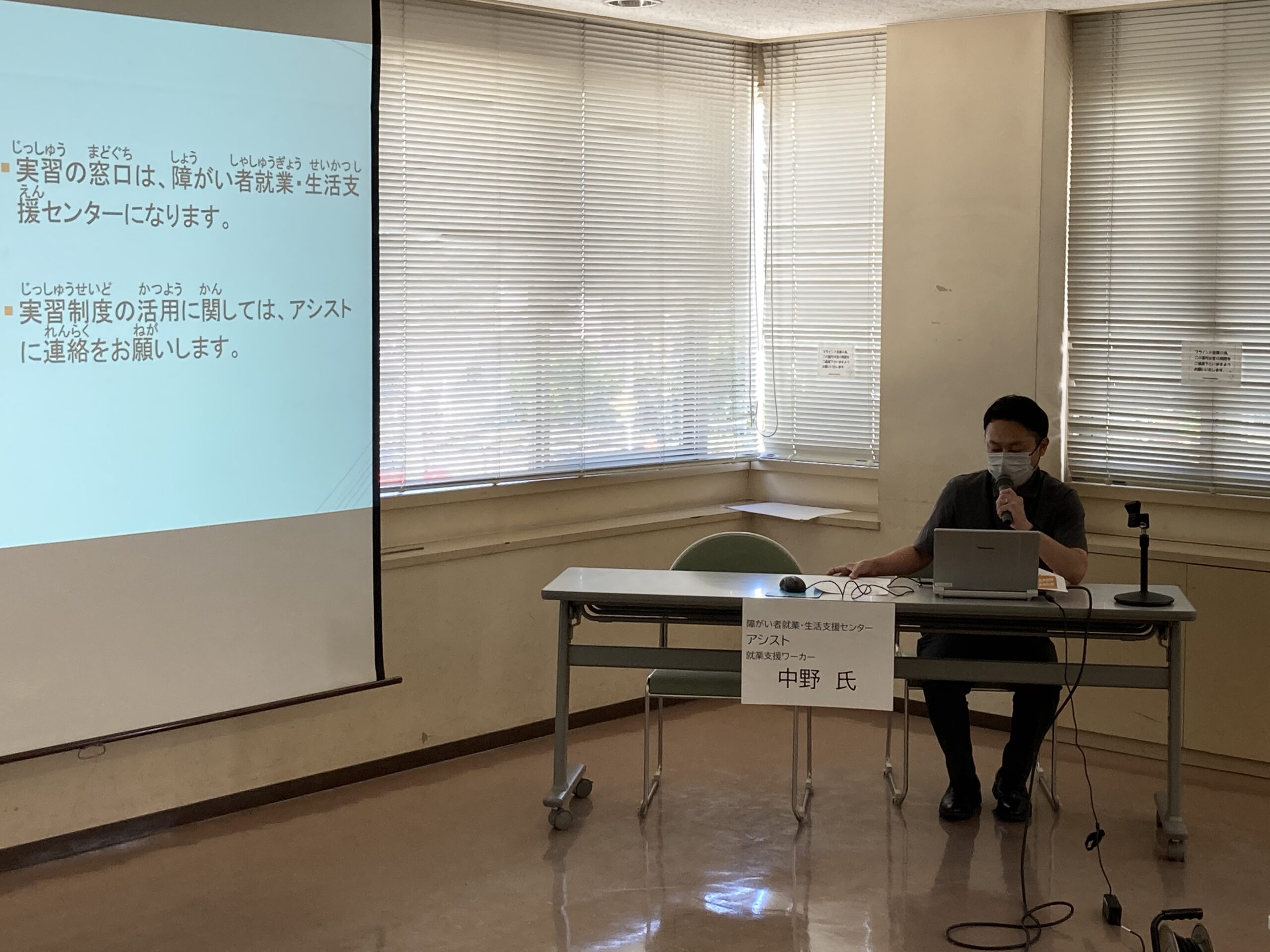 アシスト就業支援担当者より、県実習を活用するまでの流れを説明させていただきました。