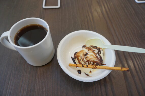 アイスクリーにチョコを掛け、選択したドリンクをつけての提供しました。