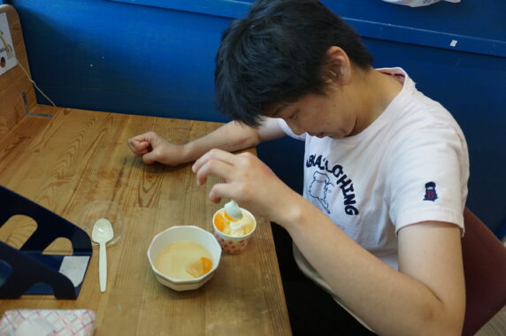 おやつタイムで、好きなフルーツをトッピングしていただいたり・・・・
