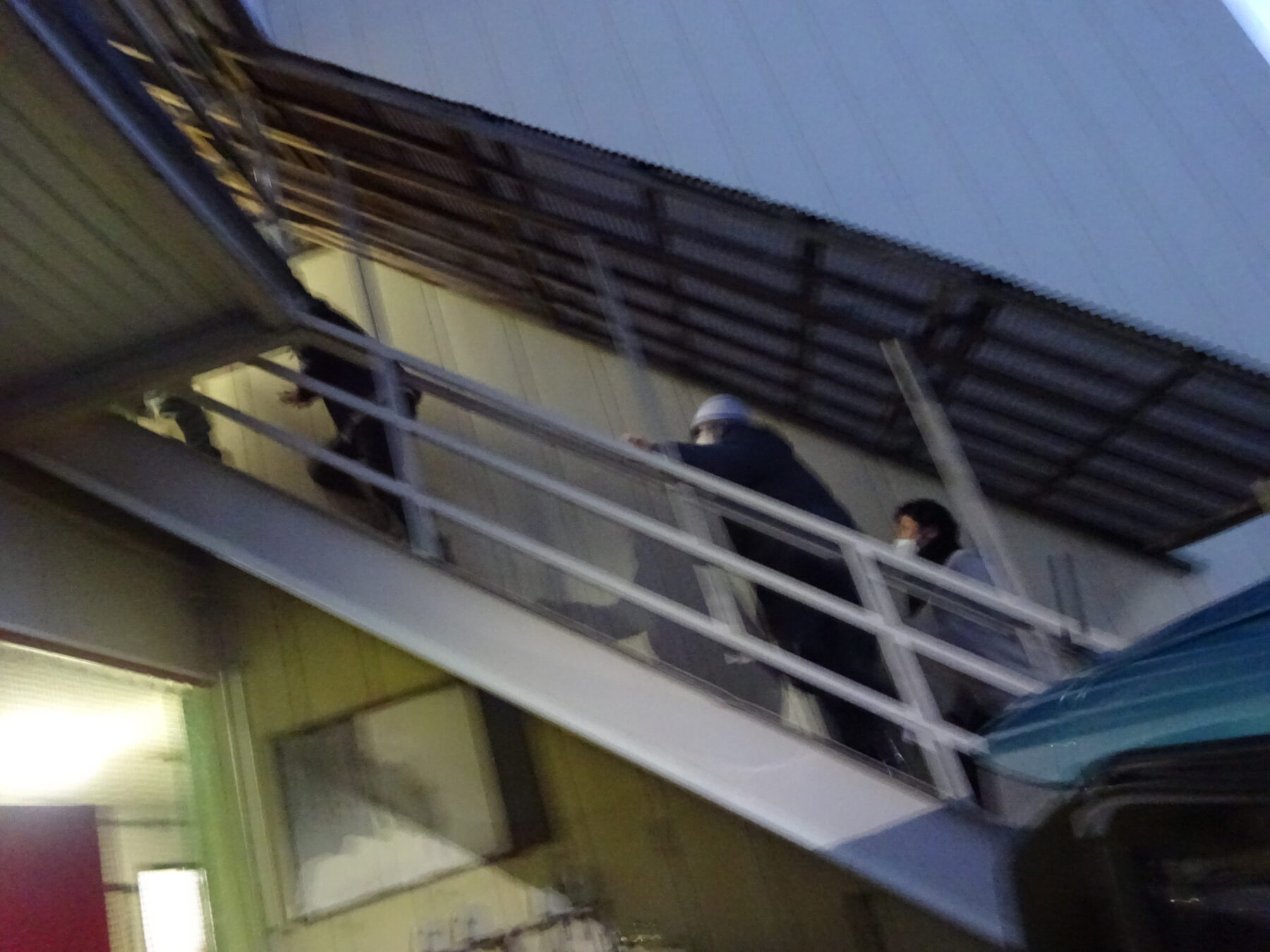 アパートタイプの住居では、外の階段で2階へ避難しました。