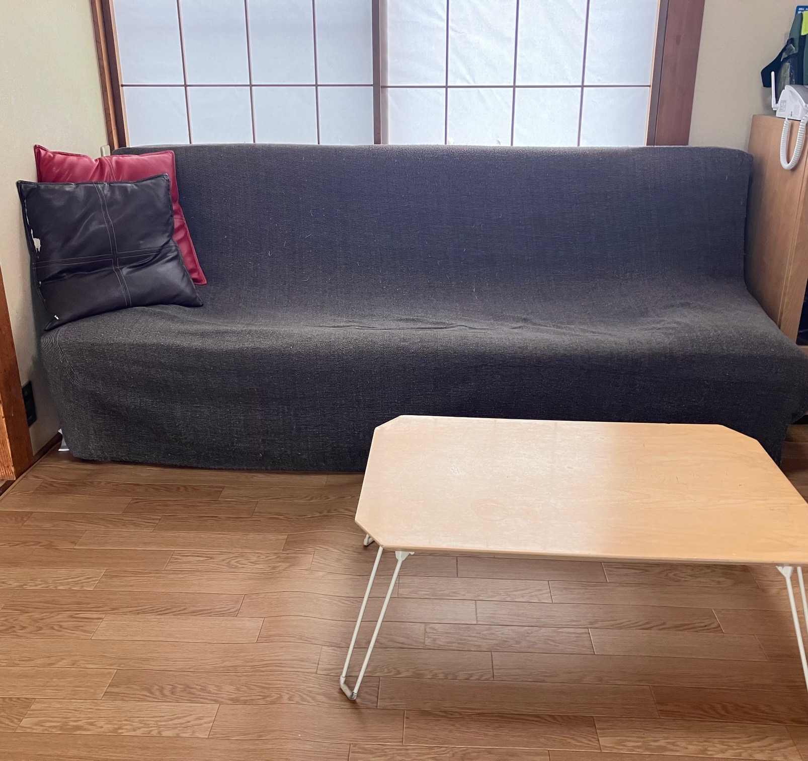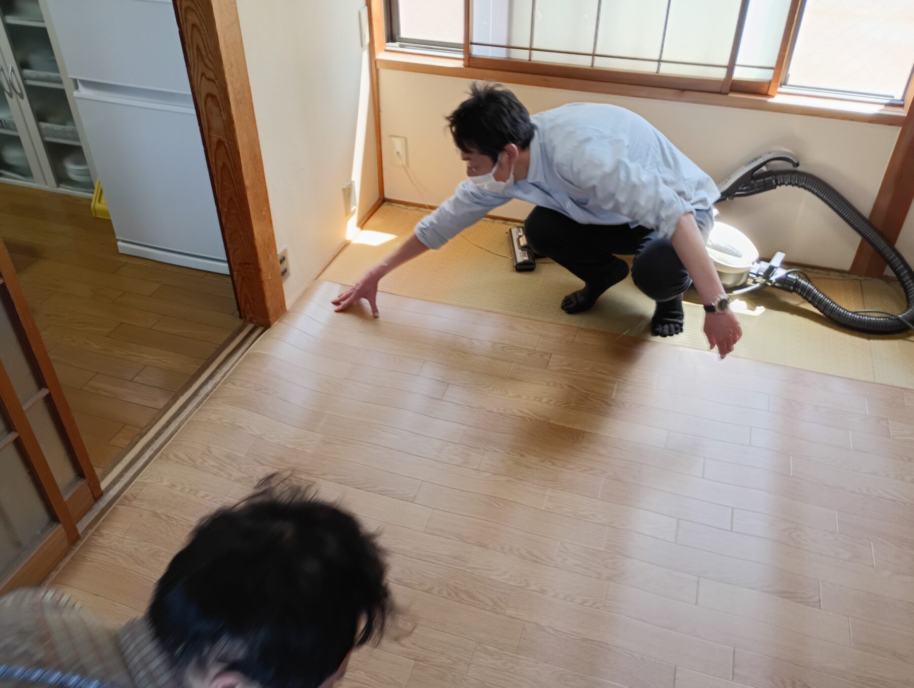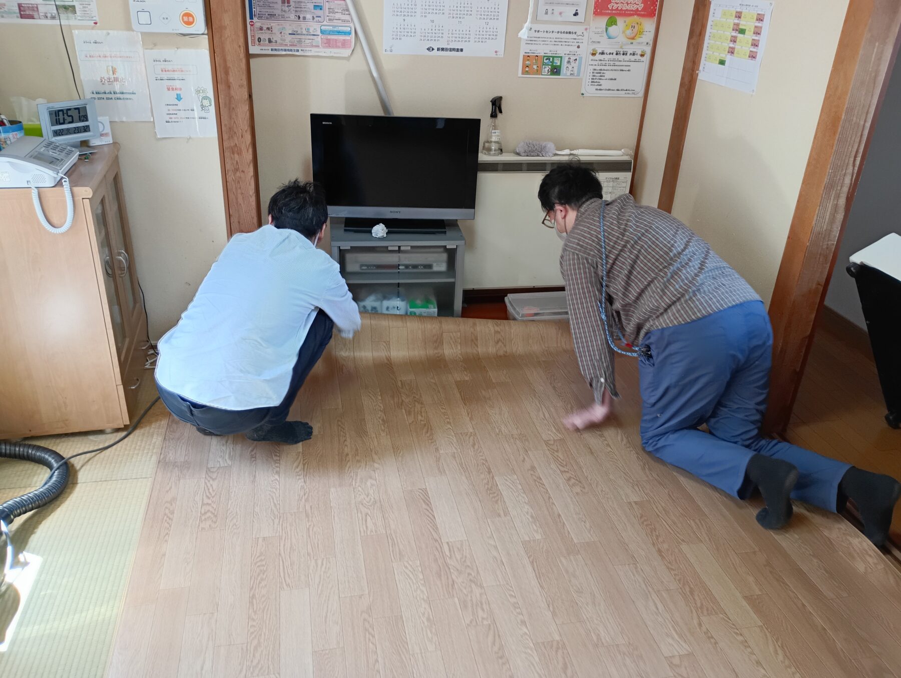 先日、職員で住居のリビングシート張替えを行いました。