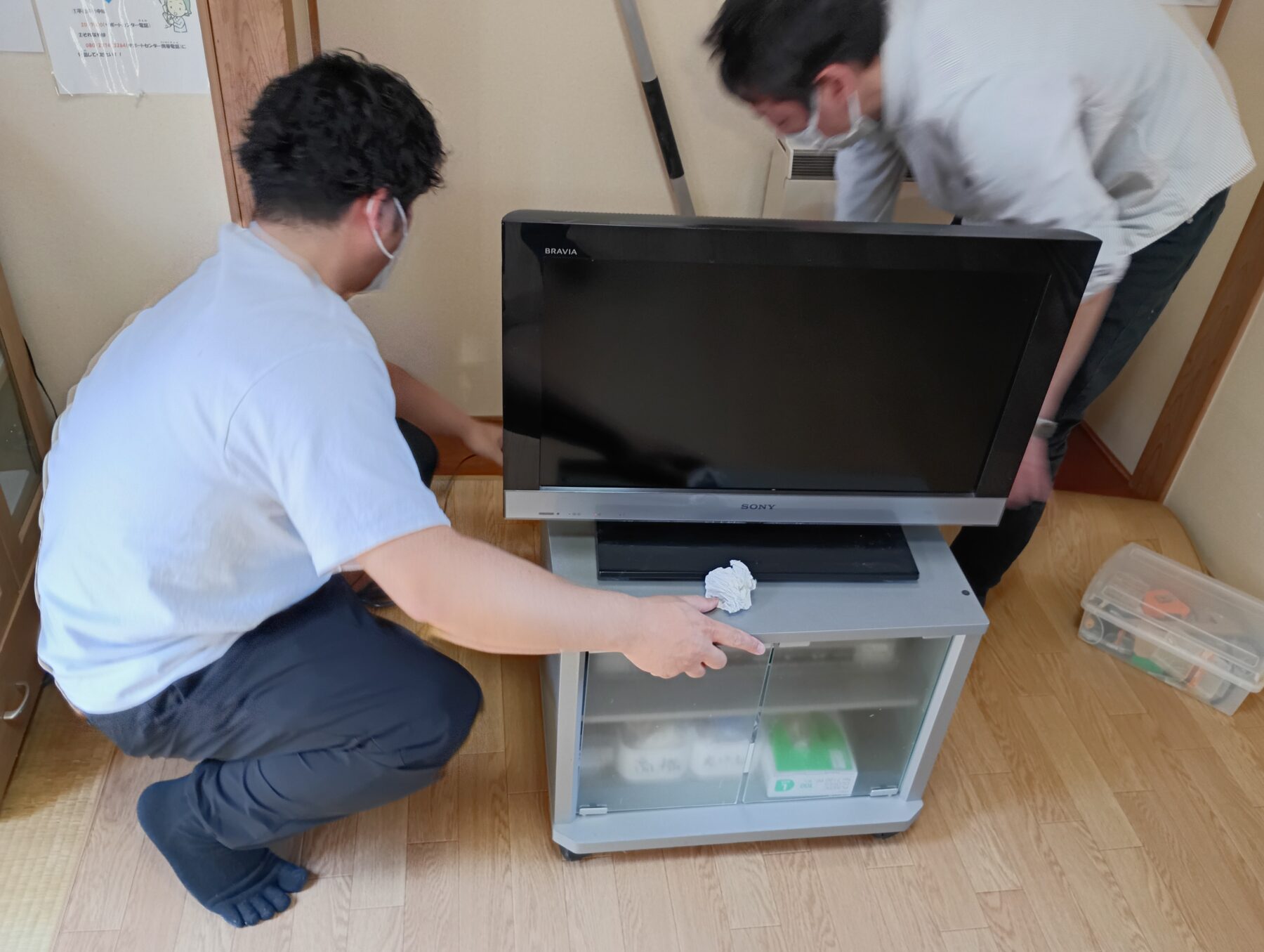 テレビやソファーを移動して、掃除をして新しいシートを敷きました。