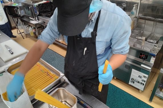 本日はA型利用者さんの仕事をご紹介します。 🍝パスタの計量中です。 ラザニア下準...