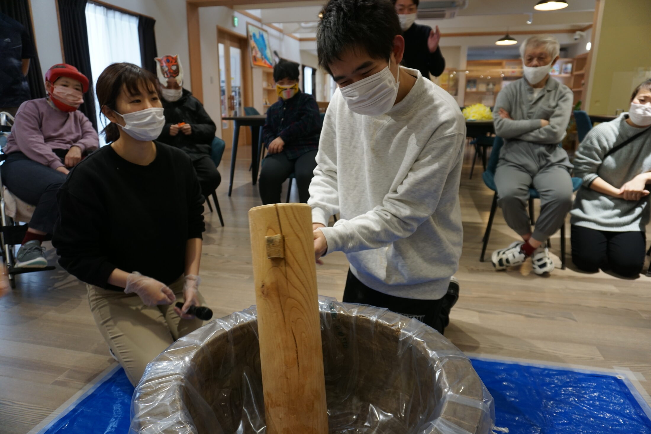 音楽を使った「ミュージックケア」などを取り入れ、利用者の方たちが感覚的に身体を使えるような活動を実施しているのが特色です。