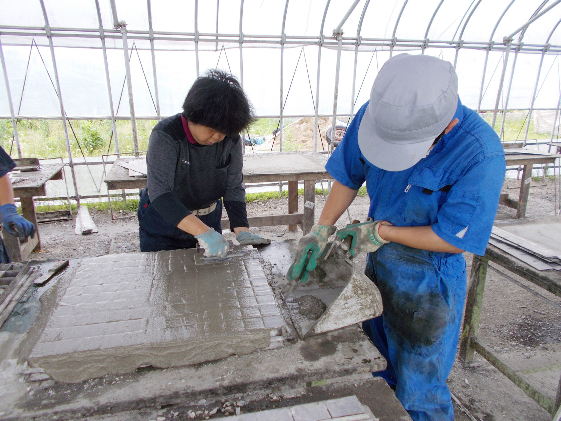 きぼうてらすでは、一般企業からの受託作業のほか、自社製品としてコンクリート構造物の耐久性を高めるスペーサーブロックの生産なども手掛けています。