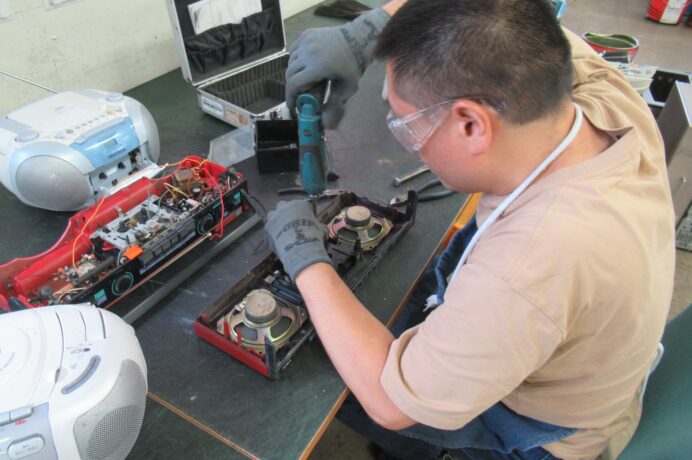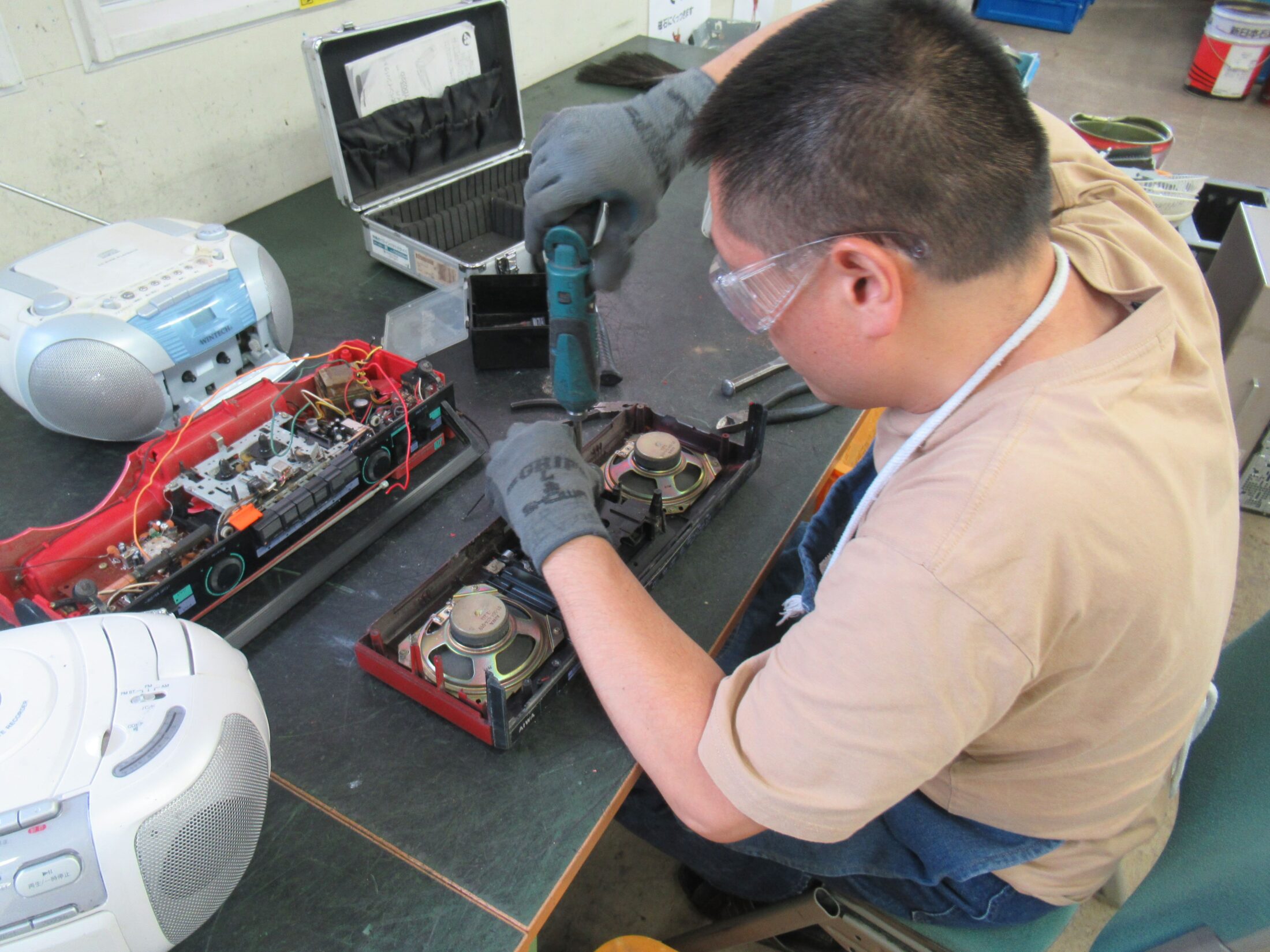 すくらむでは、主に小型家電の解体作業や、企業からの受託作業、施設外の清掃作業などを行っています。