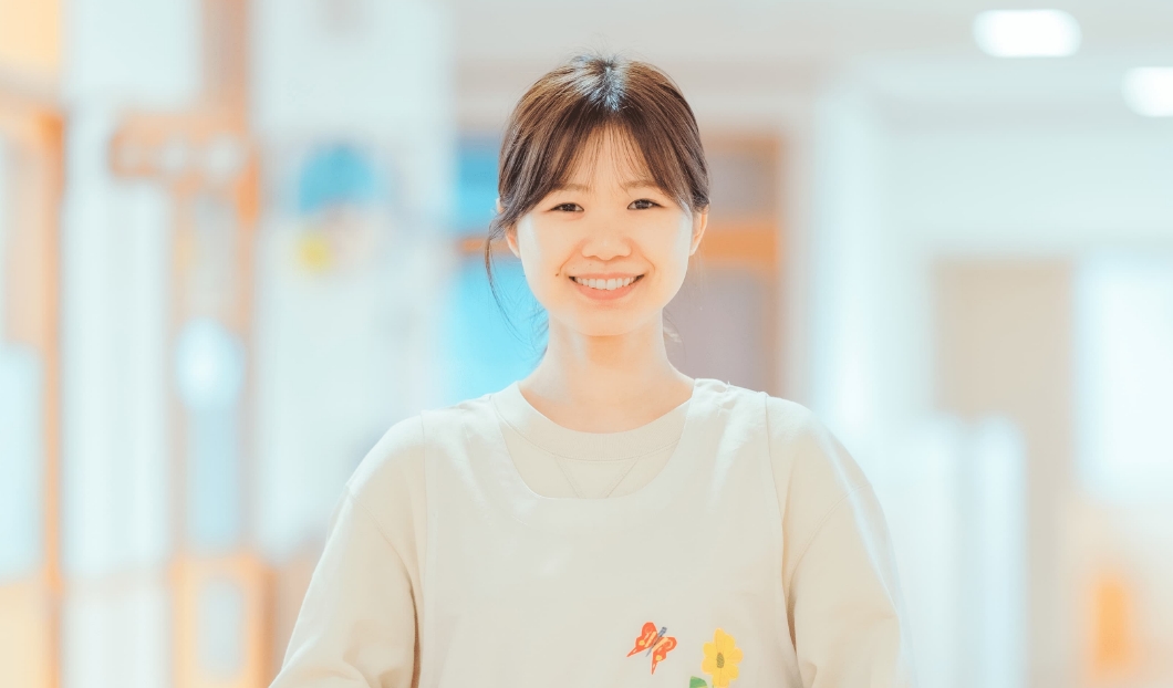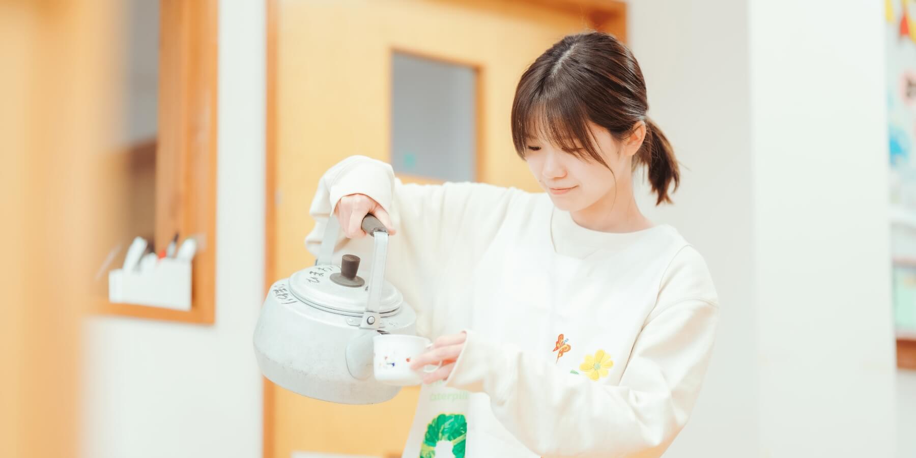 この仕事を始めてから毎日、かわいい子どもたちと優しい先輩たちに囲まれて、とても楽しく過ごしています。でも、それぞれの子どもに合わせた教え方や接し方で迷うことも多いです。